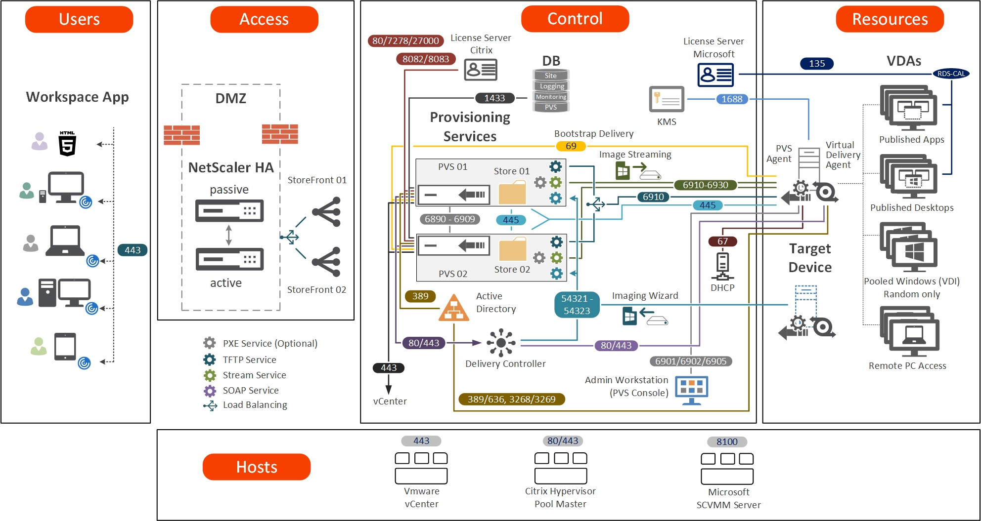 Citrix Provisioning Services Architecture Diagram and Communication Ports