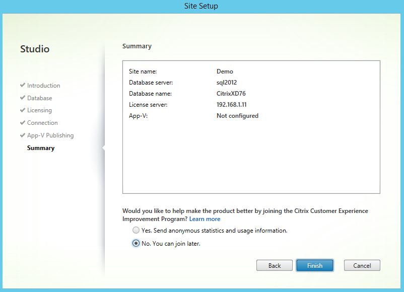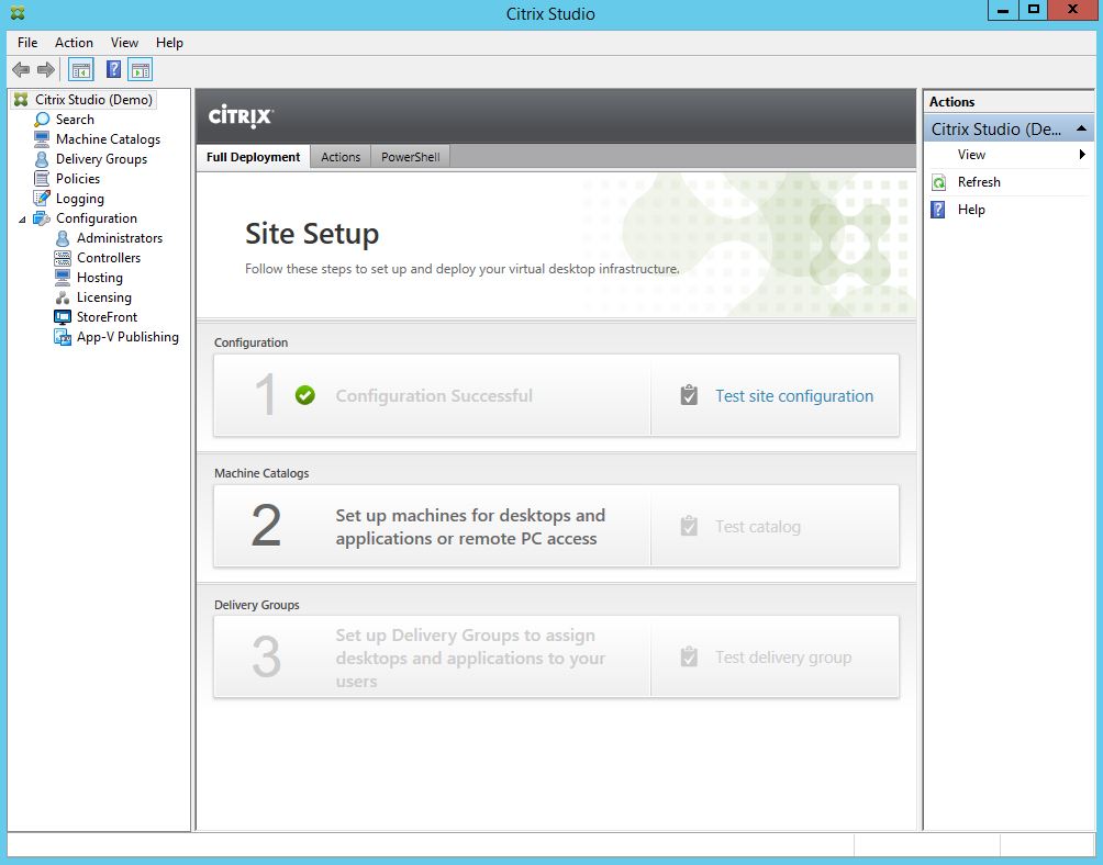Die Option „A fully configured, production-ready Site“ erlaubt uns granulare Konfiguration der Citrix Komponenten.