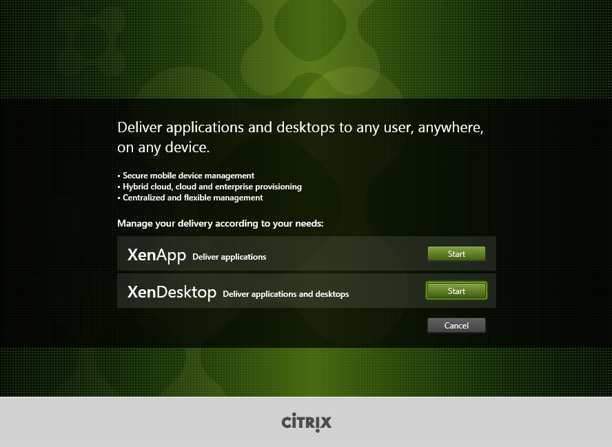 Die Installation startet automatisch vom Installationsdatenträger. Sie können sowohl XenApp, als auch XenDesktop starten. Im Hintergrund wird dieselbe Datei exe ausgeführt.