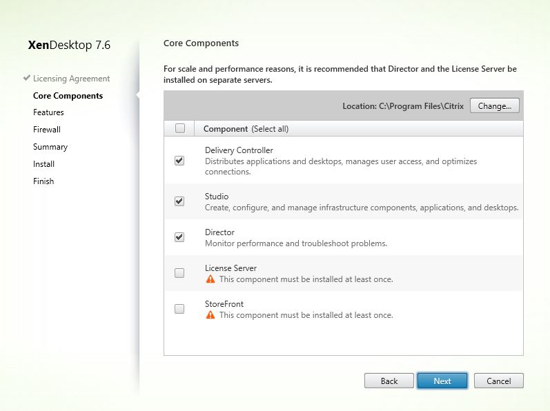 3. Den License Server und den StoreFront Server werden auf den separaten VMs installiert. Alle Komponenten auf einem Server passt eher für PoC ‚Proof of Concept‘.
