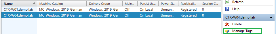 Analog zu der PowerShell Konfiguration sollen die VDAs mit entsprechenden Tags versehen werden. Anhang der Tags können die VDAs zu einer virtuellen Gruppe gebildet werden, welche später mit den entsprechenden Regeln verknüpft wird.