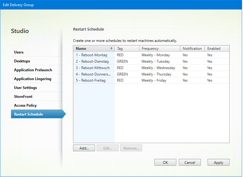 Citrix Virtual Apps and Desktops - Neustartzeitpläne einrichten (Multiple Restart Schedule)