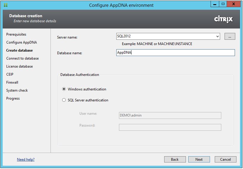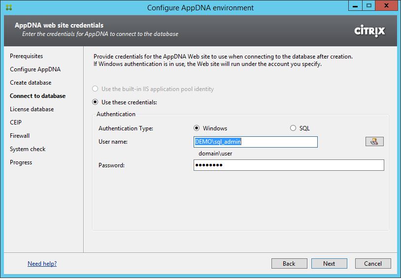 11. Starten Sie AppDNA und logen Sie sich wie folgt ein: