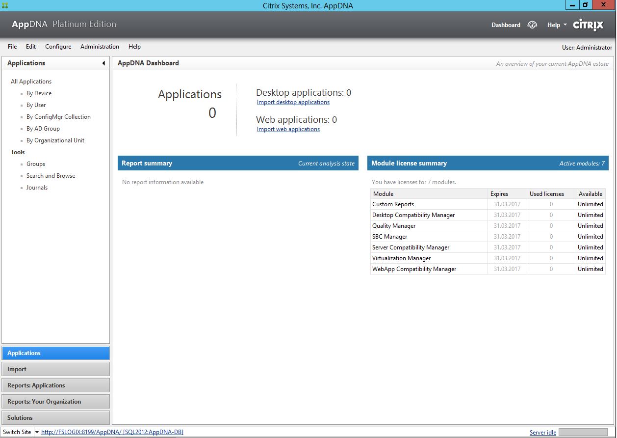 Citrix bietet auch die Optimierung für AppDNA an. Die Informationen finden Sie Optimize Citrix AppDNA