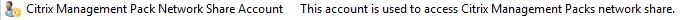 Die Installation von Citrix Management Packs benötigt einen weiteren Benutzer, um auf die Windows-Freigabe zugreifen zu dürfen.
