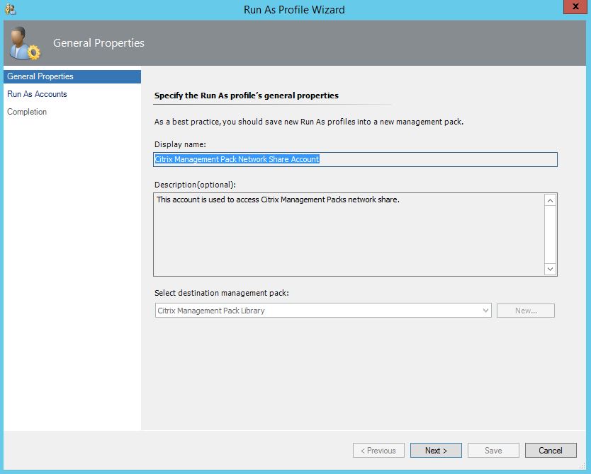 7. Profile für „Citrix Management Pack Network Share Account“ anpassen