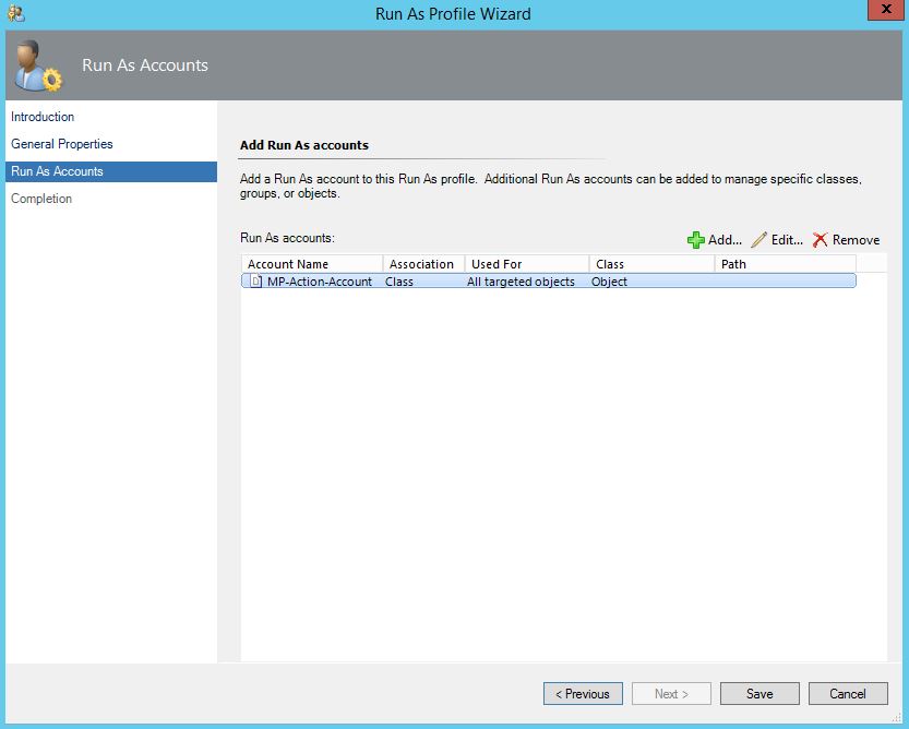 SCOM Operation Manager starten >> zum Bereich Administration navigieren, Run As Configuration > Profiles auswählen.