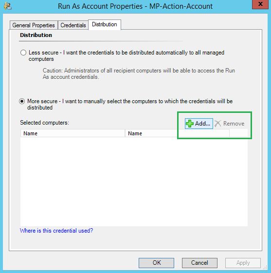 5.3. Auf Add klicken, um den Run As User auszuwählen