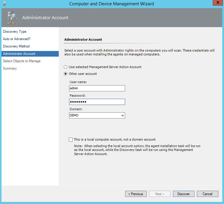 7. Für die Agent-Installation nutze ich einen speziellen Account (Local Admin)